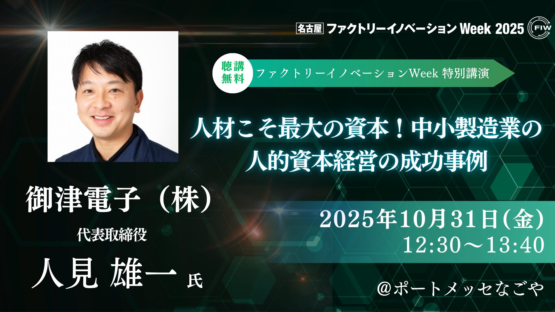 この度、2025年10月29日~31日にポートメッセなごやで開催されるFactory Innovation Week 2025 名古屋において、当社代表取締役の人見雄一が特別講演「人材こそ最大の資本!中小製造業の人的資本経営の成功事例」を行います。