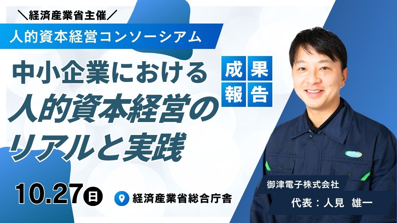 10月27日(日)、弊社代表取締役の人見雄一が、経済産業省主催の「人的資本経営コンソーシアム 実践プログラム成果報告会」に登壇いたします。