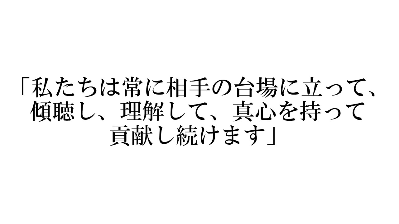 常に社内外問わず相手の立場を尊重する事。想いや考えている事を最後まで聞きとどけ傾聴する事。伝えたい事や想いを理解する事。